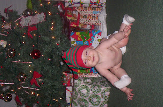 I know I am really late getting the Christmas pics on here but here they are. We were trying to get the pic taken for the christmas card. She looked so darn cute in the elf hat. Just something else she will probably hate me for later!